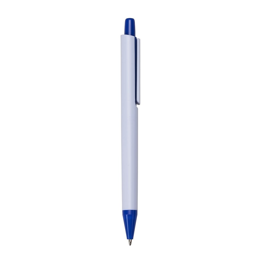 Caneta plástica com carga esferográfica azul 1.0 mm e acionamento por clique.