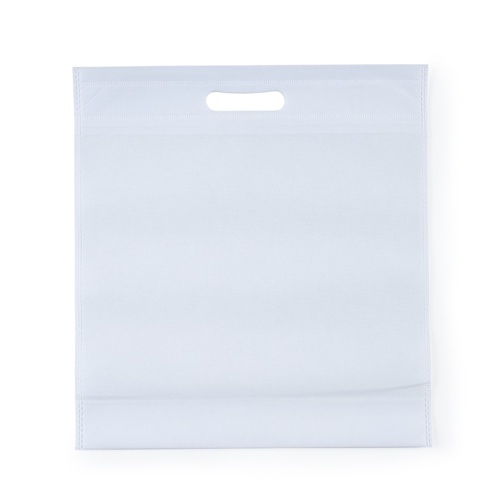 Sacola TNT metalizada 110g/m² com botão. Confeccionado em TNT com revestimento plástico laminado, parte superior possui botão plástico para fecho.