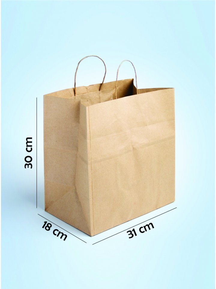 Sacola em papel kraft 100g cordão torcido.